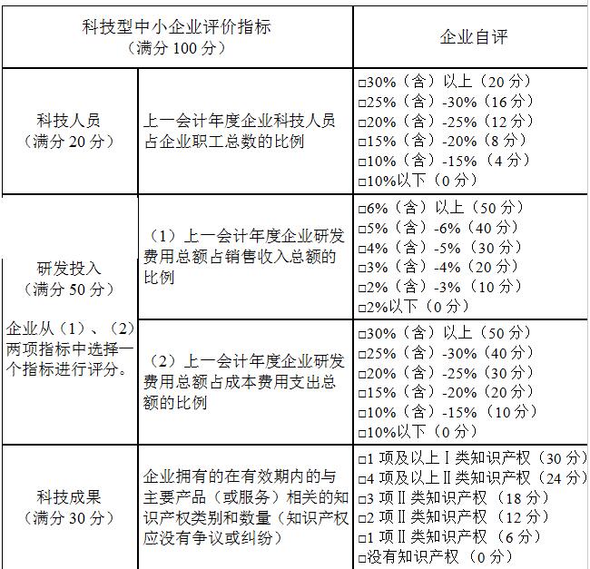 5.企业根据科技型中小企业评价指标进行综合评价所得分值不低于60分,且科技人员指标得分不得为0分。
