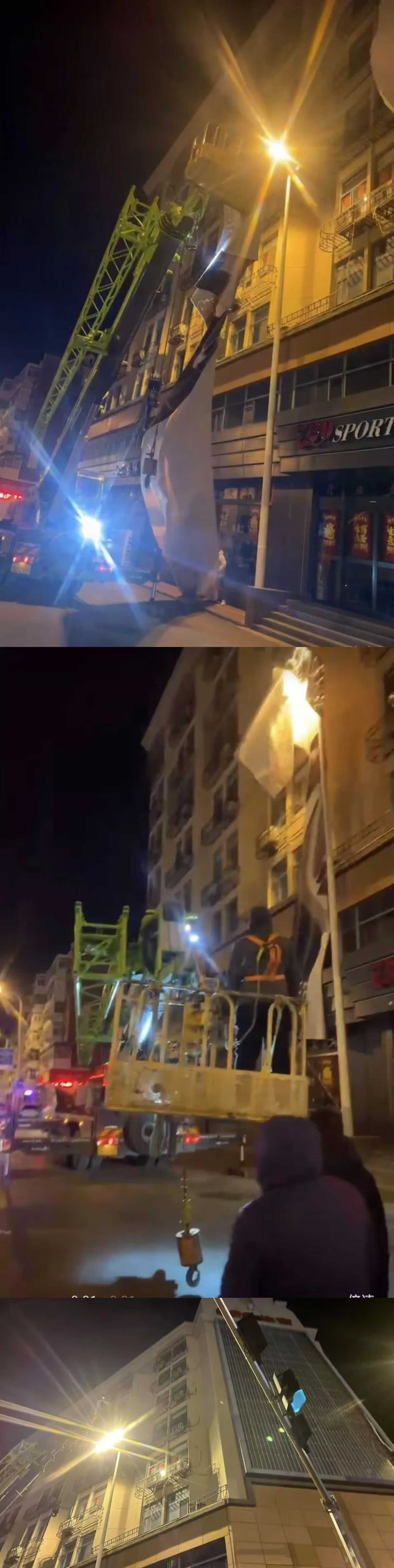 夜间风力十足,寒风如刀割,冷得让人发颤,加上户外广告体量大,给拆除工作带来了不小困难。执法队员立即联系工人,相互配合,在做好安全措施的前提下,小心翼翼地拆除广告,避免影响到楼内居民休息。昏黄的灯光下,他们“逆风而行”的身影让人倍感温暖。经过2个多小时的努力,隐患广告终于安全落地。