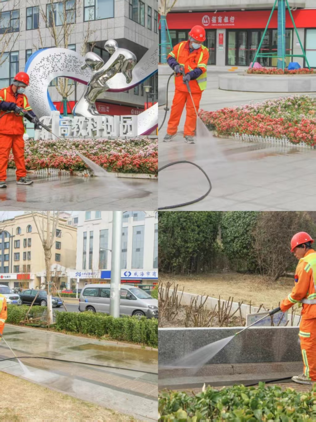 清晨5时许,城市还未完全苏醒,水洗作业已拉开序幕。洒水车缓缓行驶在街道上,均匀地将水喷洒向路面,使路面上附着的灰尘、细小颗粒物变得松散,便于后续清扫。紧随其后的机械化清扫车,作为清扫作业主力,通过旋转的刷子将路面上垃圾、灰尘扫到一起,同时利用高压水枪对路面进行冲洗。机扫配合少量人工的作业模式,大幅提升了清扫效率,确保道路焕然一新,以最洁净的状态拥抱春天。