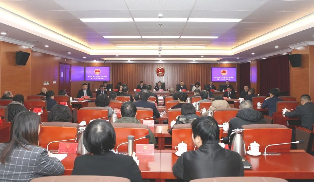 第十八届人大常委会第十八次会议于2023年11月30日举行,区人大常委会主任孙长顺主持会议并讲话,区人大常委会副主任李瑞清、丁志安、陈欣,副区长胡学春出席。区人民法院院长李鹤贤、区人民检察院检察长郑国振以及区监察委有关负责同志、区人大工作部门负责同志、人大各街道工委专职副主任和部分区人大代表列席会议。