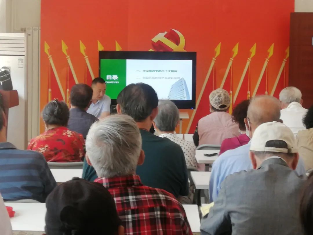 日前,区人大代表、天津创业环保集团股份有限公司总经理李杨来到体育中心街道金禧园社区,以“深悟党的二十大精神 躬耕绿色低碳环保路”为主题向社区居民群众宣讲党的二十大精神。