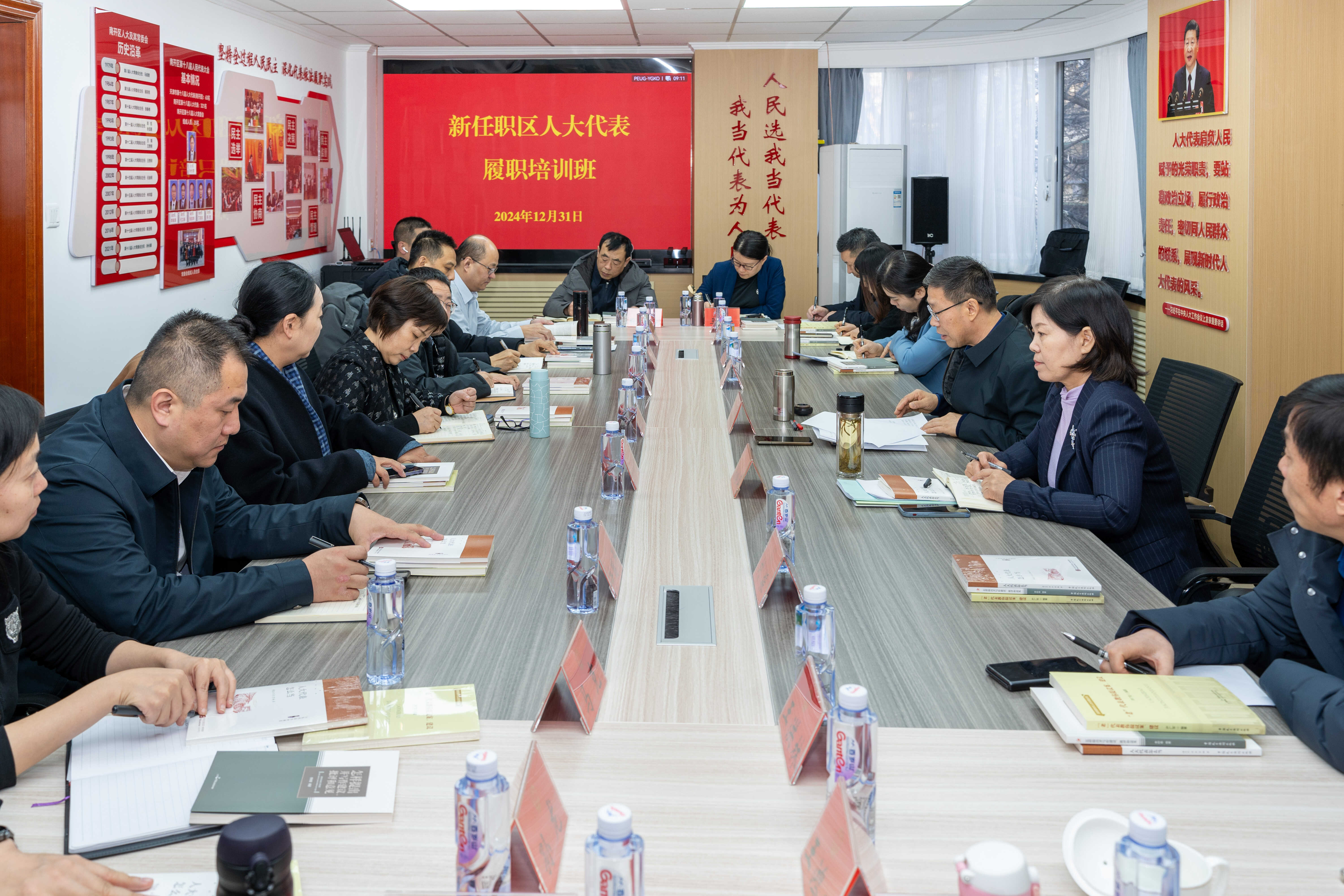 培训采取观看视频、经验介绍、专题辅导相结合的方式进行。新任职区人大代表集体观看《人大代表履职浅谈》视频;区人大代表、天津市鸵鸟墨水有限公司总经理黄强,围绕人大代表如何依法履职、发挥好代表作用介绍经验;区人大常委会代表工委负责同志,就代表履职有关事项进行提示辅导。会上为每位代表发放了《人大代表怎么当》《老代表教你提议案、建议》《怎样提出并写作建议、批评和意见》三本书,帮助他们尽快找准定位、进入角色,更好依法履职、发挥作用。