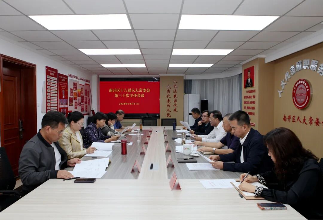 会议决定,区十八届人大常委会第二十七次会议10月17日举行。主任会议建议的议程有:传达学习贯彻习近平总书记在庆祝全国人民代表大会成立70周年大会上的重要讲话精神和天津市庆祝全国人民代表大会成立70周年座谈会精神;人事事项;对区政府基础教育学位建设工作开展专题询问;听取和审议区政府关于优化营商环境工作情况报告;书面审议《区人民政府落实区人大常委会审议政府全民反诈工作情况报告所提意见情况的报告》;书面审议《区人民政府对区人大常委会关于2023年度世界杯投注