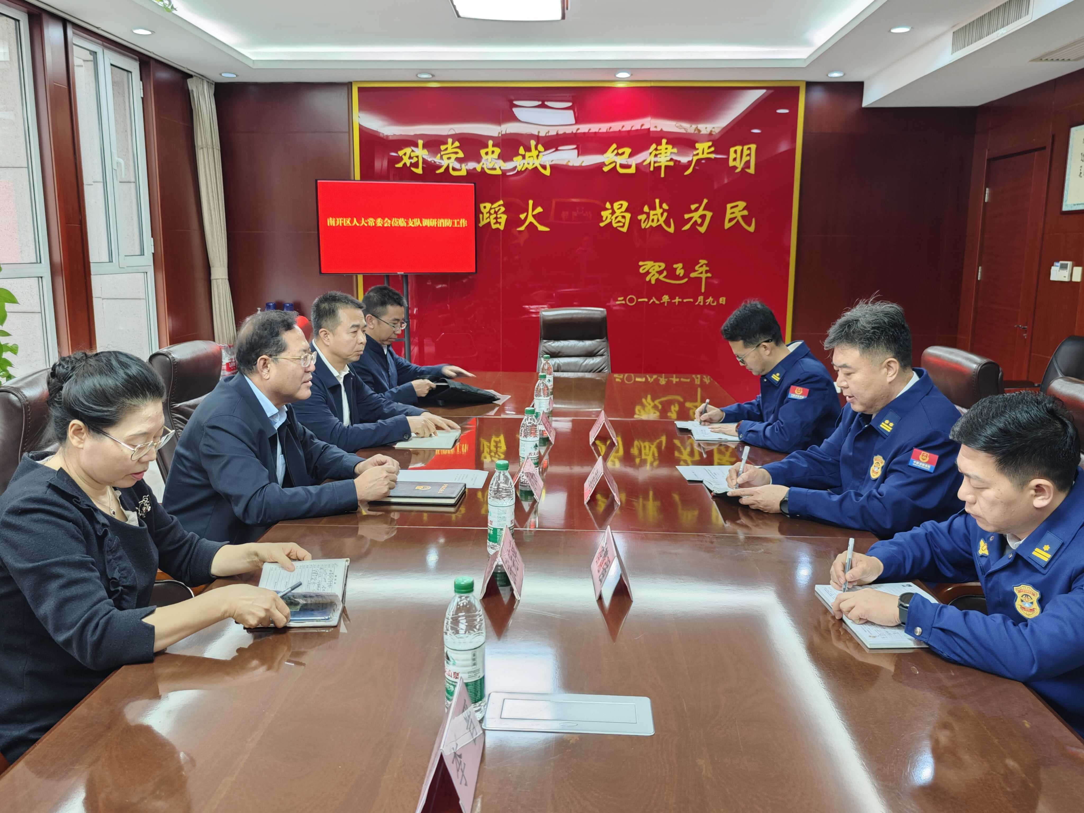 孙长顺一行实地察看了消防车辆车库、消防救援指挥中心,仔细询问了队站人员编配、车辆装备、器材管理、战备执勤及消防队员日常生活和训练等情况。调研座谈会上,孙长顺听取了我区消防救援重点工作情况,围绕支队当前队伍建设、经费保障等方面存在的问题和难点,与会人员进行了深入交流。