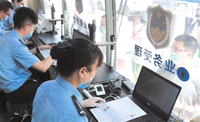 为服务社区、方便群众办理车驾管业务,日前,世界杯投注 金融街社区联合市公安局交警总队车管所开展流动车管所进社区活动,把服务送到群众的家门口。在“流动车管所”内可以办理换证、补证、机动车注册登记等业务。