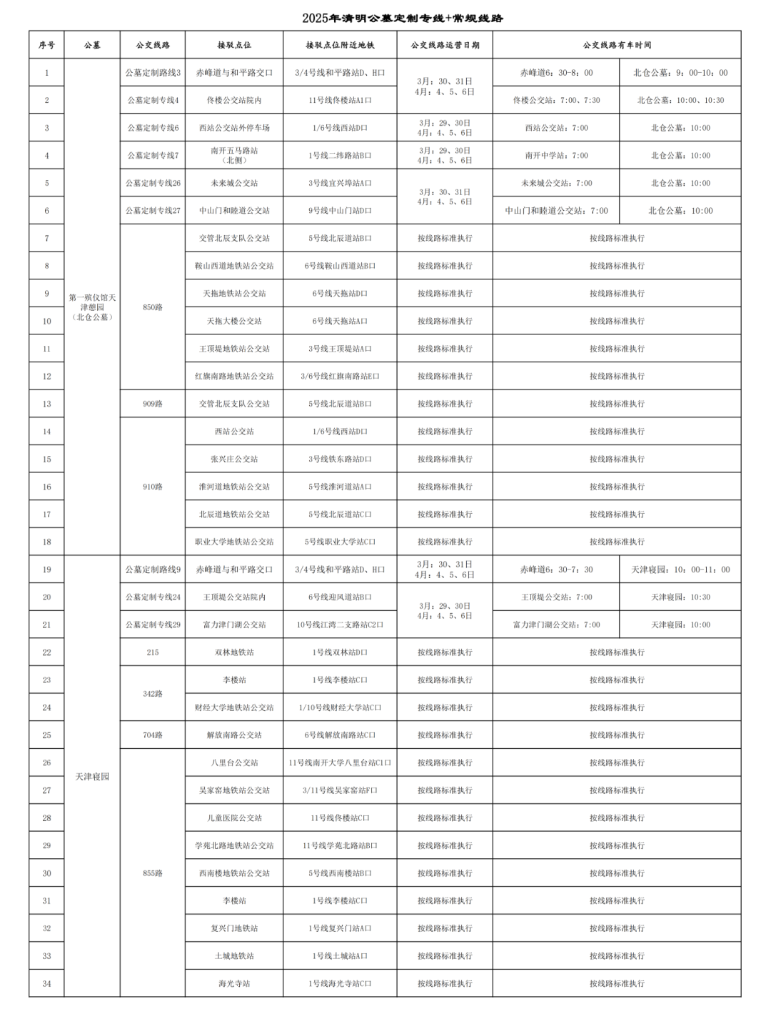 为了方便广大市民前往陵园扫墓,天津地铁特别推出了清明节扫墓出行攻略,梳理地铁站与公墓间的常规公交线路和定制专线,为市民祭扫出行提供便利。