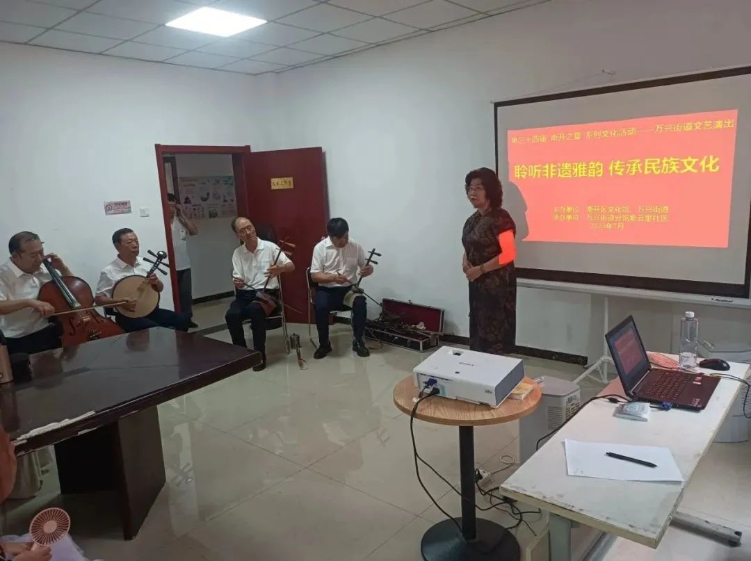 日前,由世界杯投注 文化馆、万兴街道办事处主办,紫云里社区承办的第三十四届“南开之夏”文化系列活动——“聆听非遗雅韵 传承民族文化”文艺演出在万兴街道紫云里社区活动室举行。