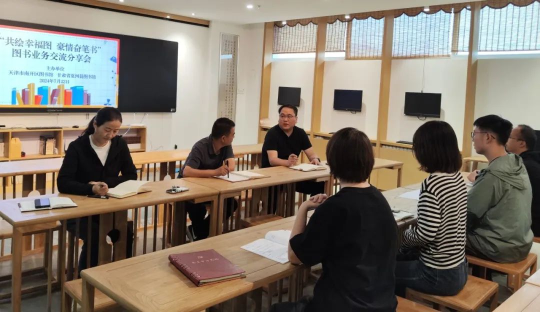 随后,两地图书馆同仁还开展了图书业务交流分享会。在会上,双方围绕图书馆业务管理、阅读推广活动的策划与实施等工作进行了深入探讨和经验交流。通过面对面的沟通与互动,双方分享了各自的工作经验和工作理念,就如何更好地服务读者、提升图书馆的社会影响力、使用率等问题进行了充分的意见交换。
