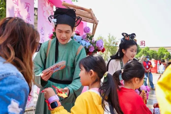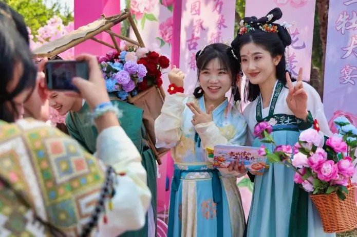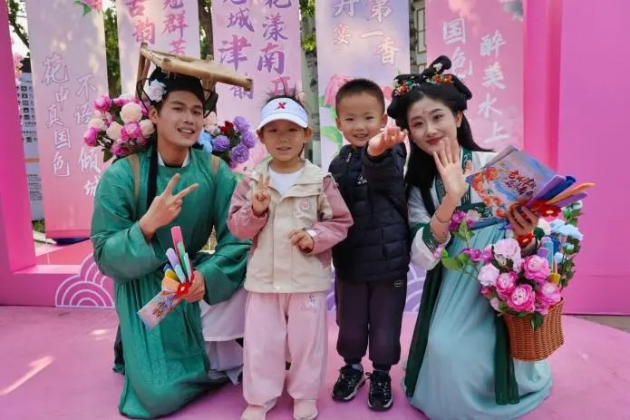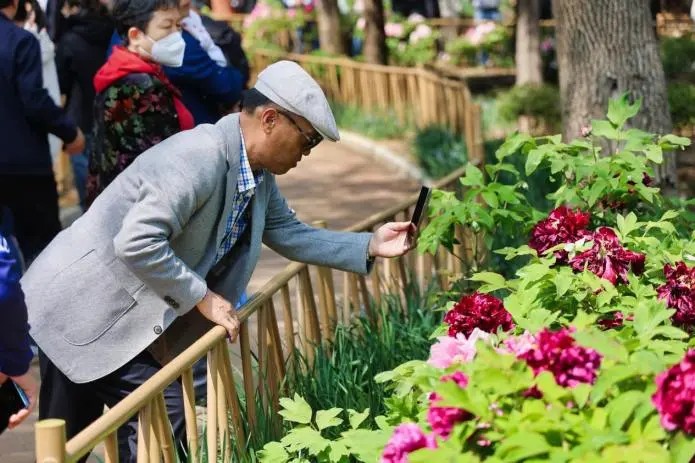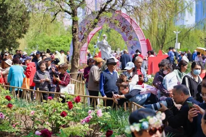 花漾南开春意浓,牡丹花海成打卡胜地。正值春日赏花季,水上公园内牡丹、海棠等花卉竞相绽放,与国潮美陈、牡丹花路等景观交相辉映。游客们漫步花海,或驻足拍照,或参与“诗乐雅集飞花令”互动,与NPC“簪花郎”对诗赢取限定小红花手环,现场欢声笑语不断。游客感慨:“赏花听音乐会,这才是天津春日的正确打开方式!”