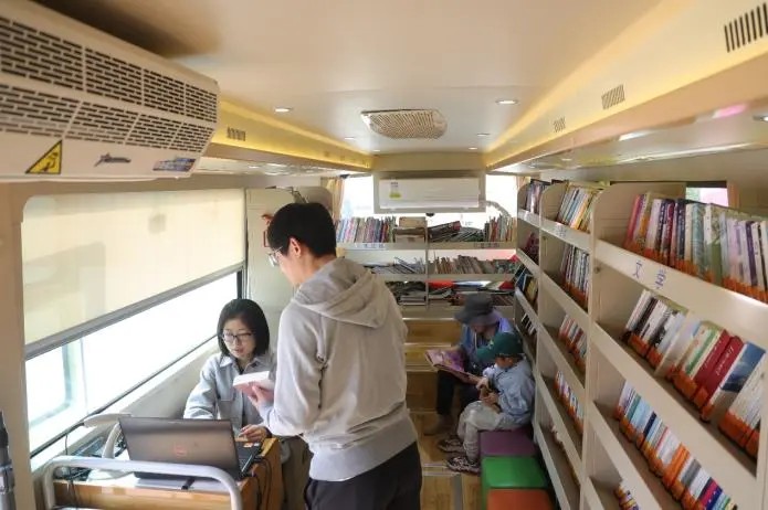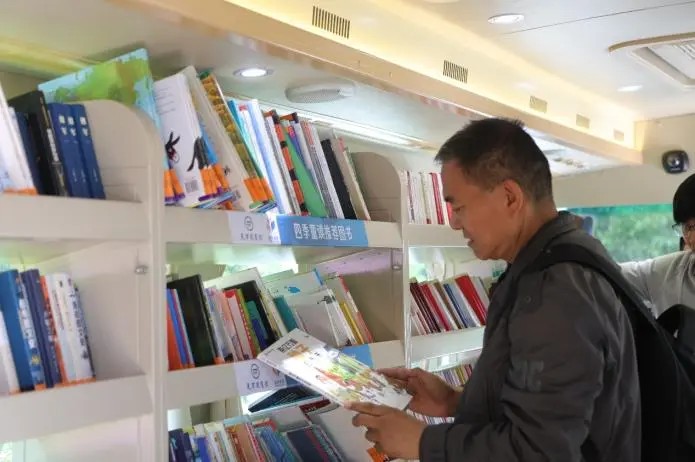 随着活动的开展,流动图书车周围逐渐聚集起越来越多的游客。他们或驻足浏览,寻找心仪的书籍;或轻声交流,分享阅读的喜悦。孩子们在家长的陪伴下,沉浸在绘本的世界里,脸上洋溢着幸福的笑容;年轻人则穿梭在书架间,挑选着能启迪思想的佳作;老年人也饶有兴致地翻阅着养生、历史类书籍,享受着阅读的宁静与惬意。