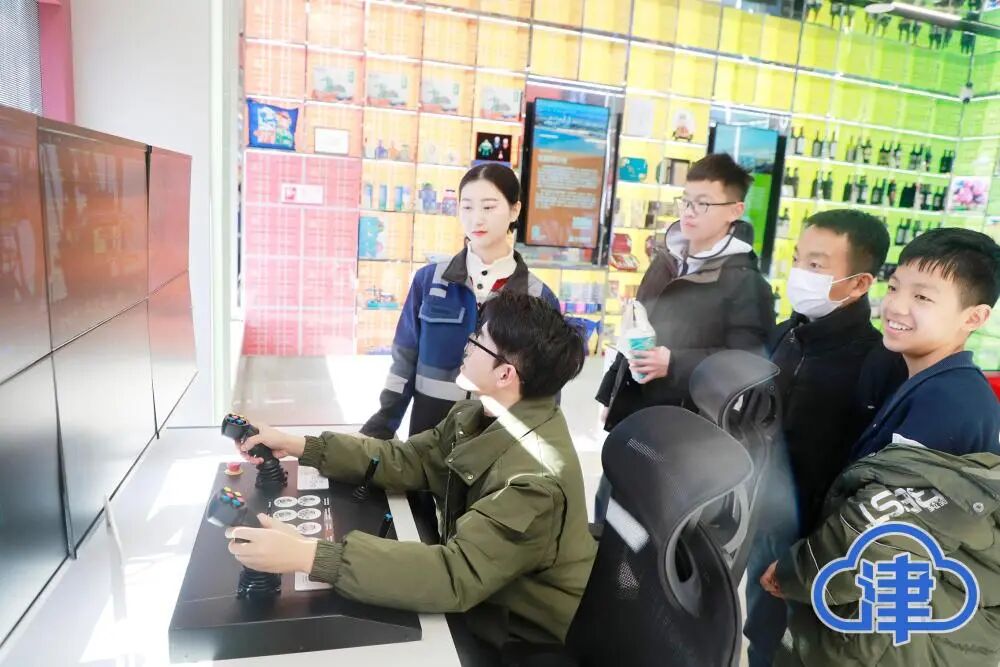 刚刚过去的这个春节假期,张媛和同事们着实忙碌了一阵。“负一层沉浸式投影展厅专门定制了3部沉浸式影片,聚焦天津港口和城市历史脉络的探寻,彰显天津因港长兴的起源与特质。游客们看完感觉非常震撼,纷纷表示,看过之后了解了天津港、天津地区的历史,也了解了天津东疆保税港区售卖的产品,拉近了港口和城市之间的距离。特别是,独具港口特色的集装箱作业模拟远程操控体验项目吸引了不少小朋友参与其中。通过不断地实践和练习,孩子们最终圆满地完成操控任务,收获精美的明信片,非常开心。”